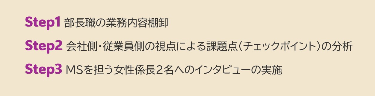 そこで、Cチーム全体として、この企業のMS導入を事例として研究すべく、3つのステップを作り、MSの具体的導入への道筋を立てました。